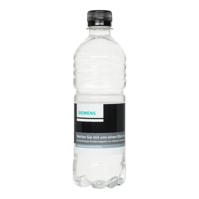 Choose our 50 cl rPET bottles with custom label, made from 100% recycled PET and fully recyclable. We print your branded water bottles with a scratch- and waterproof label, designed entirely to your specifications. The bottles are filled with pure spring water and come with a white normal cap; other cap colors are available upon request.